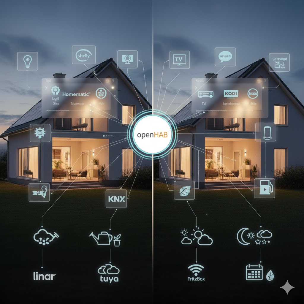 Der wahre Clou von openHAB liegt in seiner Fähigkeit, einen echten Technologie-Mix zu orchestrieren. Ohne diese Plattform würde mein Smart Home aus lauter Insellösungen bestehen. openHAB fungiert als Übersetzer zwischen: