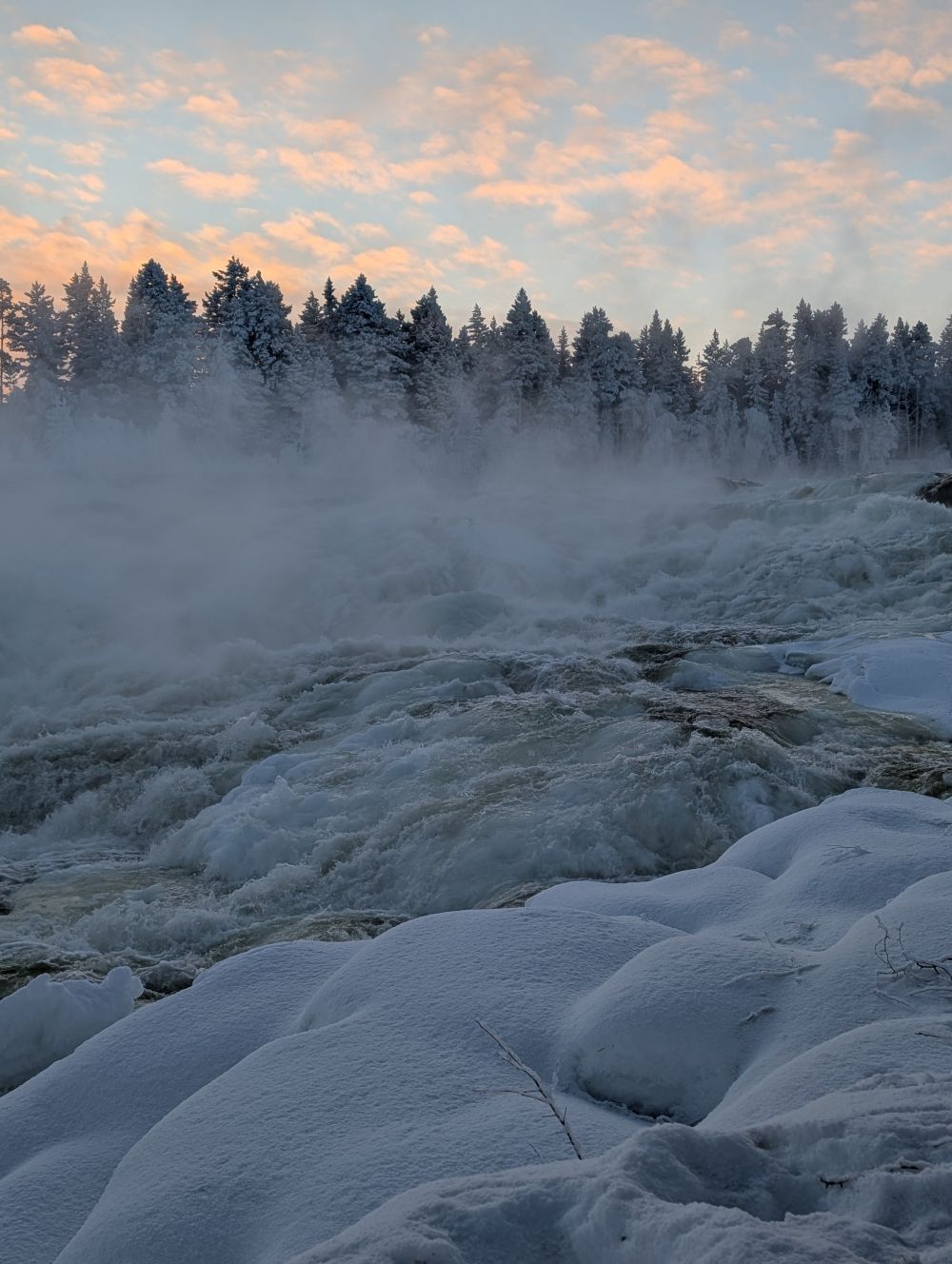 Ein absolutes Highlight war der Ausflug nach Storforsen, den größten Stromschnellen Nordeuropas. Die tosenden Wassermassen inmitten der winterlichen Landschaft boten ein faszinierendes Naturschauspiel.