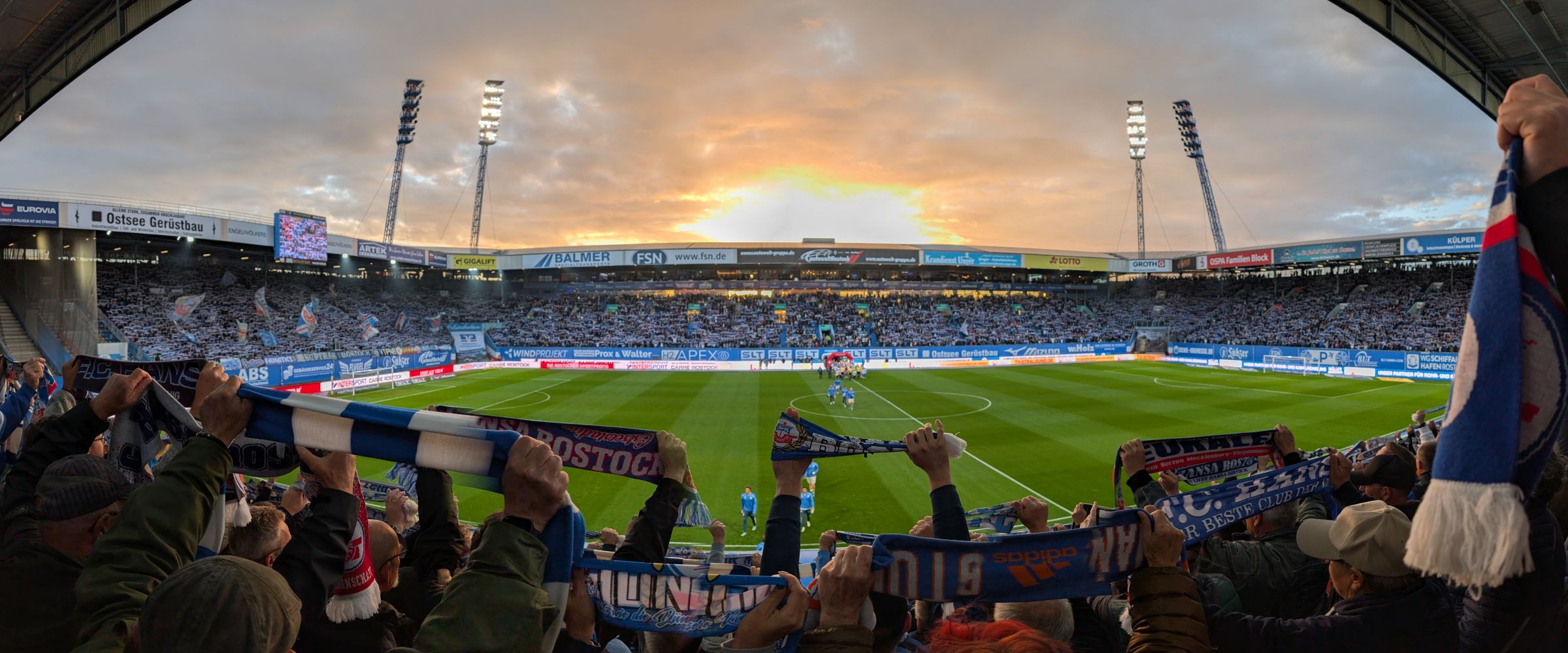 Sightseeing in Rostock und Warnemünde Am Spieltag selbst hatten wir noch Zeit, die Hansestadt Rostock und das Seebad Warnemünde zu erkunden. Rostock beeindruckt mit seiner historischen Altstadt, dem alten Stadthafen und den vielen Backsteingebäuden, die von der Hansezeit erzählen. Ein kurzer Spaziergang durch die Kröpeliner Straße und am Hafen entlang, wo man die großen Kreuzfahrtschiffe bewundern kann, vermittelt eine ganz besondere maritime Atmosphäre. Später ging es weiter nach Warnemünde. Der dortige Leuchtturm und der breite Sandstrand sind einfach ikonisch. Wir haben Fischbrötchen genossen und das Treiben am Alten Strom beobachtet, bevor die Vorfreude auf das Spiel immer größer wurde.
