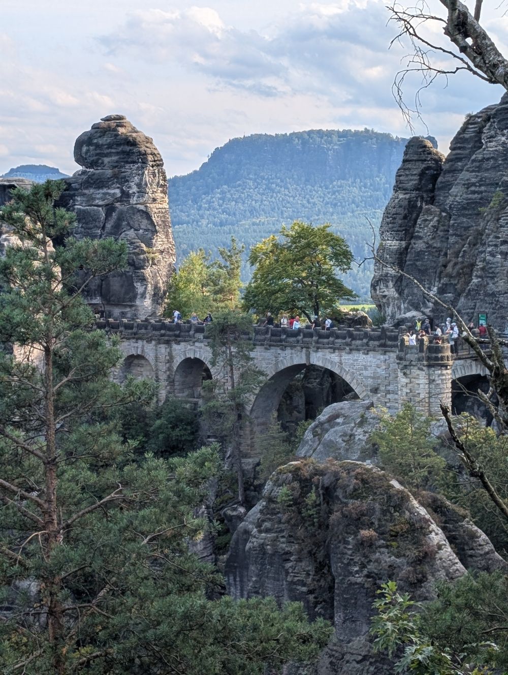 Die majestätische Basteibrücke und die geheimnisvollen Schwedenlöcher Unser erstes Ziel war die berühmte Basteibrücke. Früh morgens ging es los, um den größten Touristenansturm zu vermeiden, und das war eine goldrichtige Entscheidung! Der Weg durch die Schwedenlöcher war ein echtes Highlight. Der enge, felsige Pfad führte uns vorbei an moosbewachsenen Steinen, durch schmale Felsspalten und über abenteuerliche Holztreppen. Es fühlte sich an wie eine Entdeckungsreise in eine andere, längst vergangene Welt. An der Basteibrücke angekommen, wurden wir mit einem schlichtweg atemberaubenden Panoramablick über die Elbe und die umliegende Felsenwelt belohnt. Ein Moment purer Erhabenheit, der alle Anstrengung vergessen ließ.