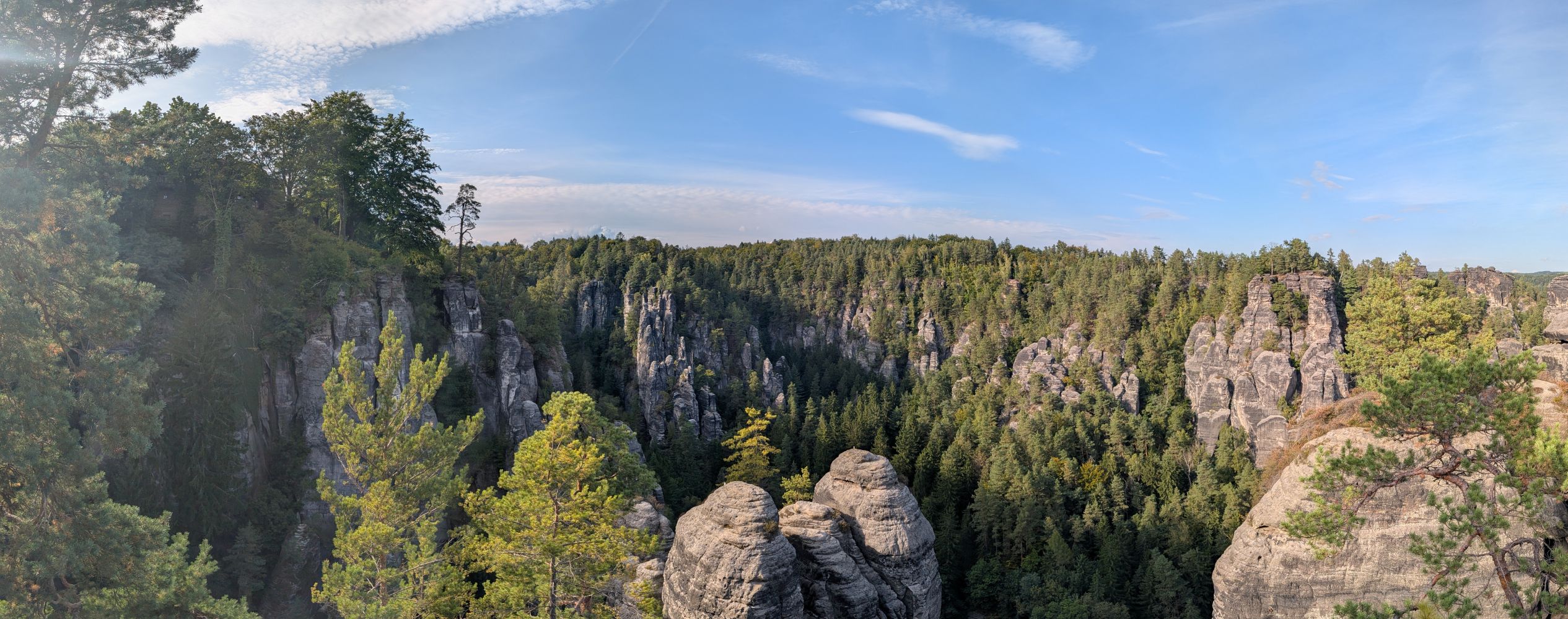 Das Prebischtor: Ein Naturwunder in der Böhmischen Schweiz Am Sonntag wagten wir den Sprung über die Grenze in die tschechische Böhmische Schweiz, um das größte natürliche Sandsteintor Europas zu bestaunen: das Prebischtor. Die Wanderung dorthin war anspruchsvoll, führte uns aber durch malerische Wälder und belohnte uns immer wieder mit fantastischen Ausblicken. Die schiere Größe und einzigartige Schönheit des Tores sind einfach überwältigend. Es ist ein Ort, der einen demütig macht und die unbändige Kraft der Natur spüren lässt.