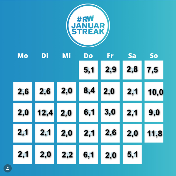 Mein #RWJanuarStreak 2026: 128,8 Kilometer pro Tag!