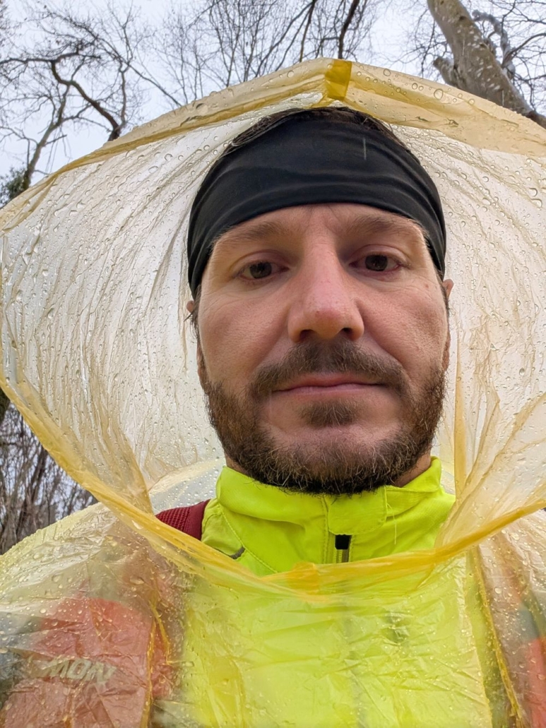 Ich war falsch ausgerüstet. Lediglich ein T-Shirt und eine Windjacke hatte ich dabei. Meine Denke: „Beim Laufen wird mir immer warm, das reicht.“ Falsch gedacht beim Wandern, besonders wenn Nässe dazu kommt. Es wurde immer kühler. Mein Glück war eine Mitläuferin, die mir einen Regenponcho lieh. Ohne diesen Poncho hätte ich den Lauf abbrechen müssen. Das war meine Rettung.